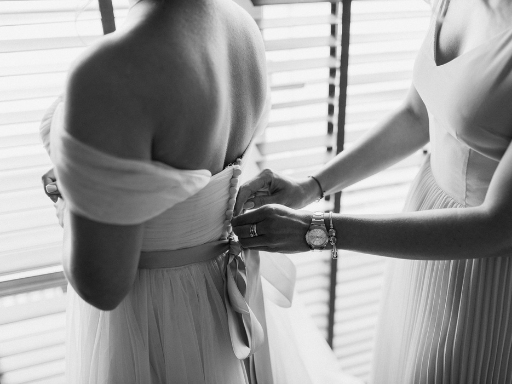 Ya sea admirando tu vestido o cuando tu dama de honor te esté ayudando a acomodarte el vestido, es un momento especial que debes de capturar.